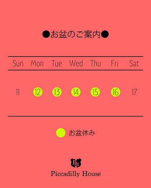 いつもピカデリーハウスをご愛顧いただきありがとうございます。