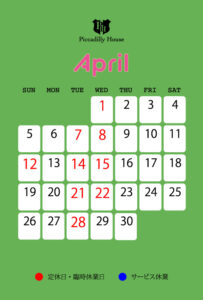 4月の営業のご案内です。